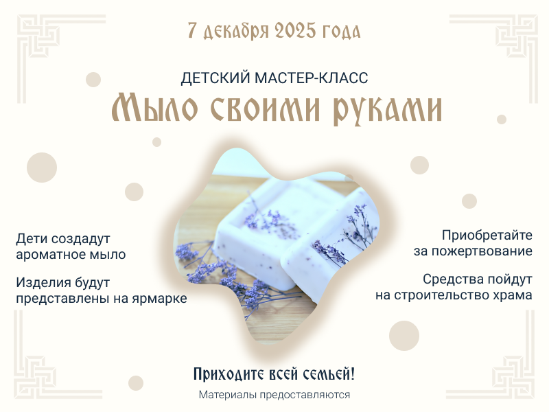 Все средства, собранные от продажи мыла, пойдут на строительство храма — вы станете частью великого дела, которое будет служить людям и Богу многие поколения.